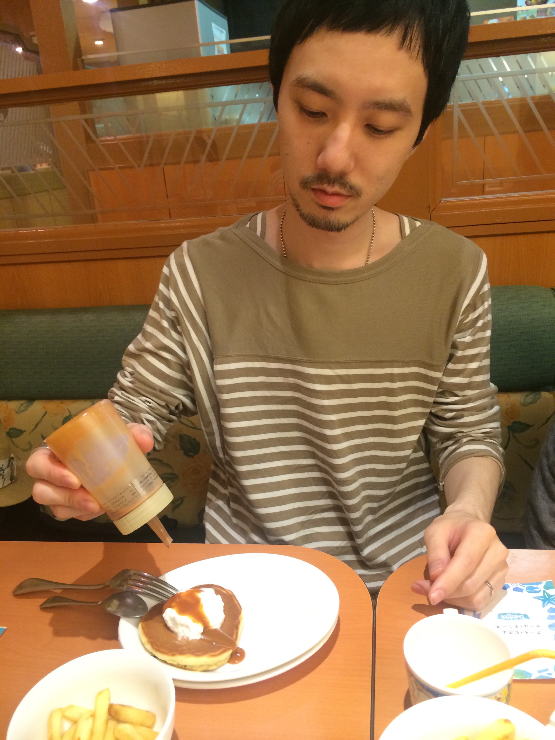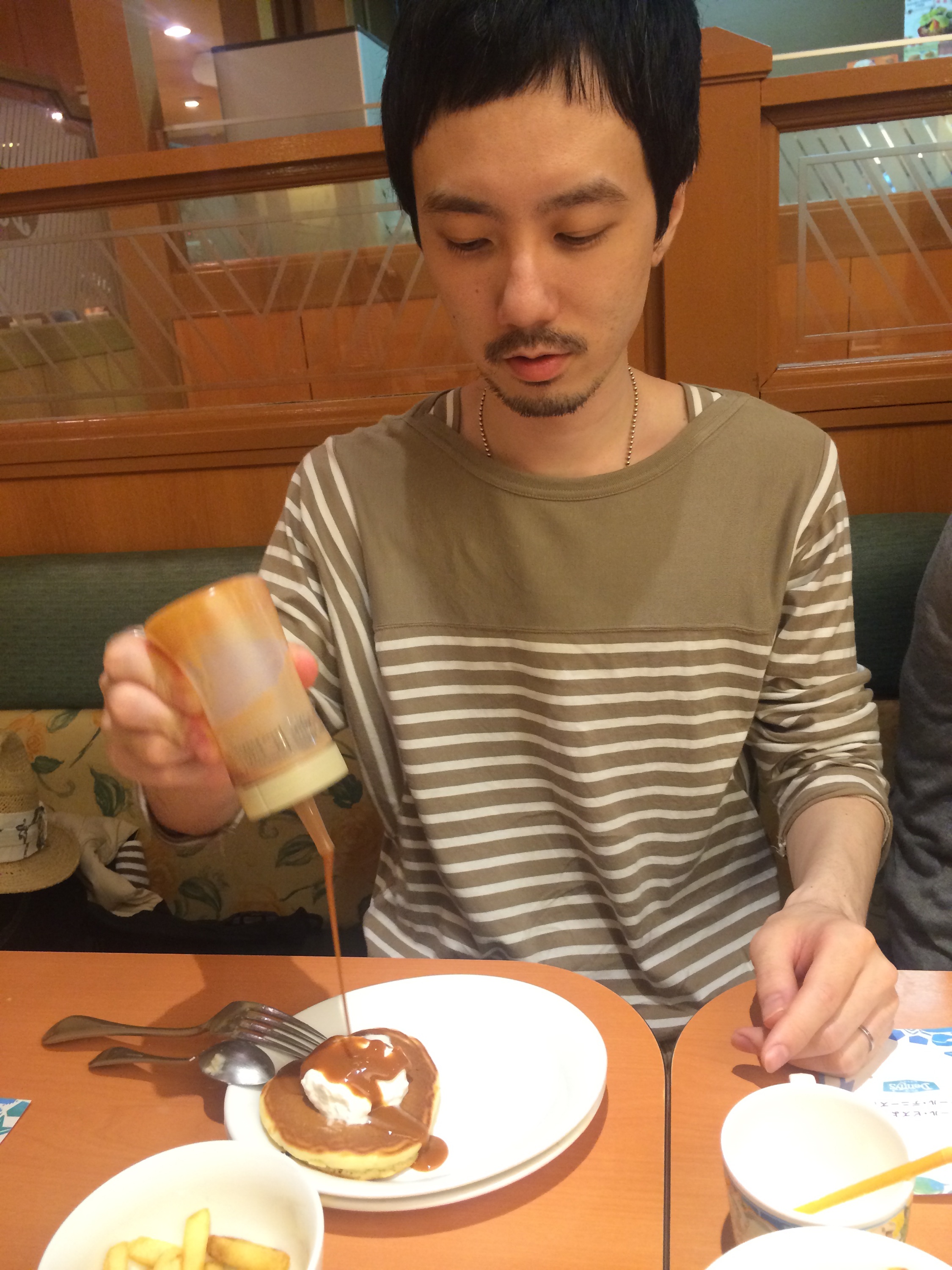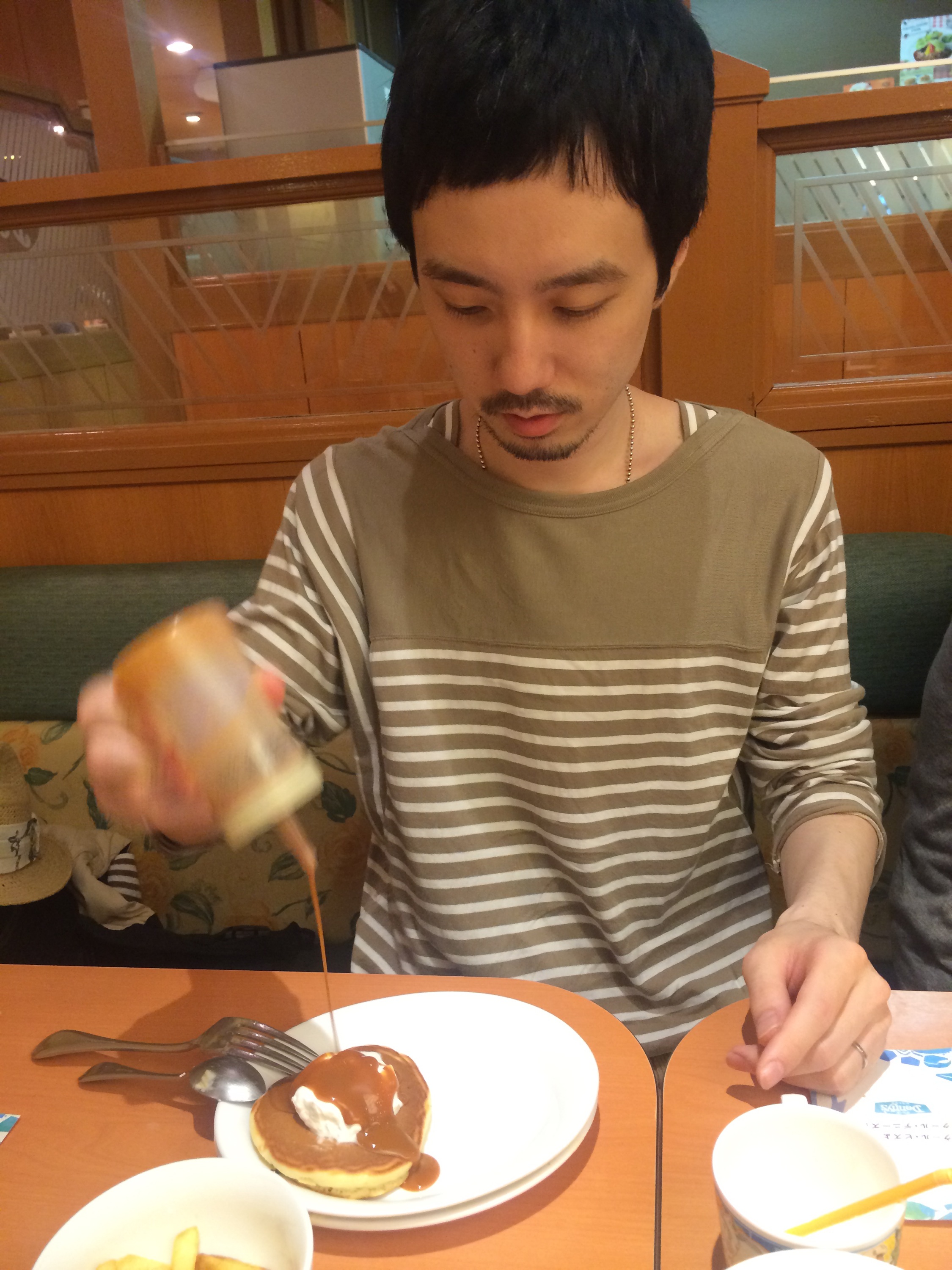 (僕は何とパンケーキが似合わない絵図らなのでしょう( ̄▽ ̄))