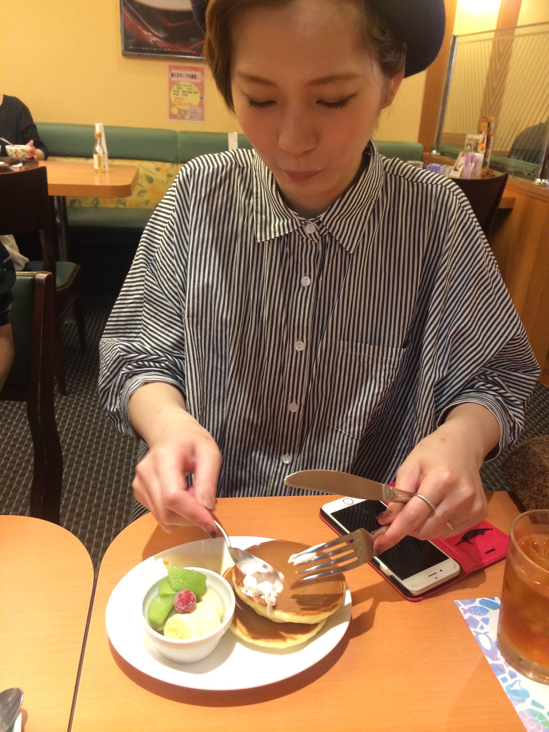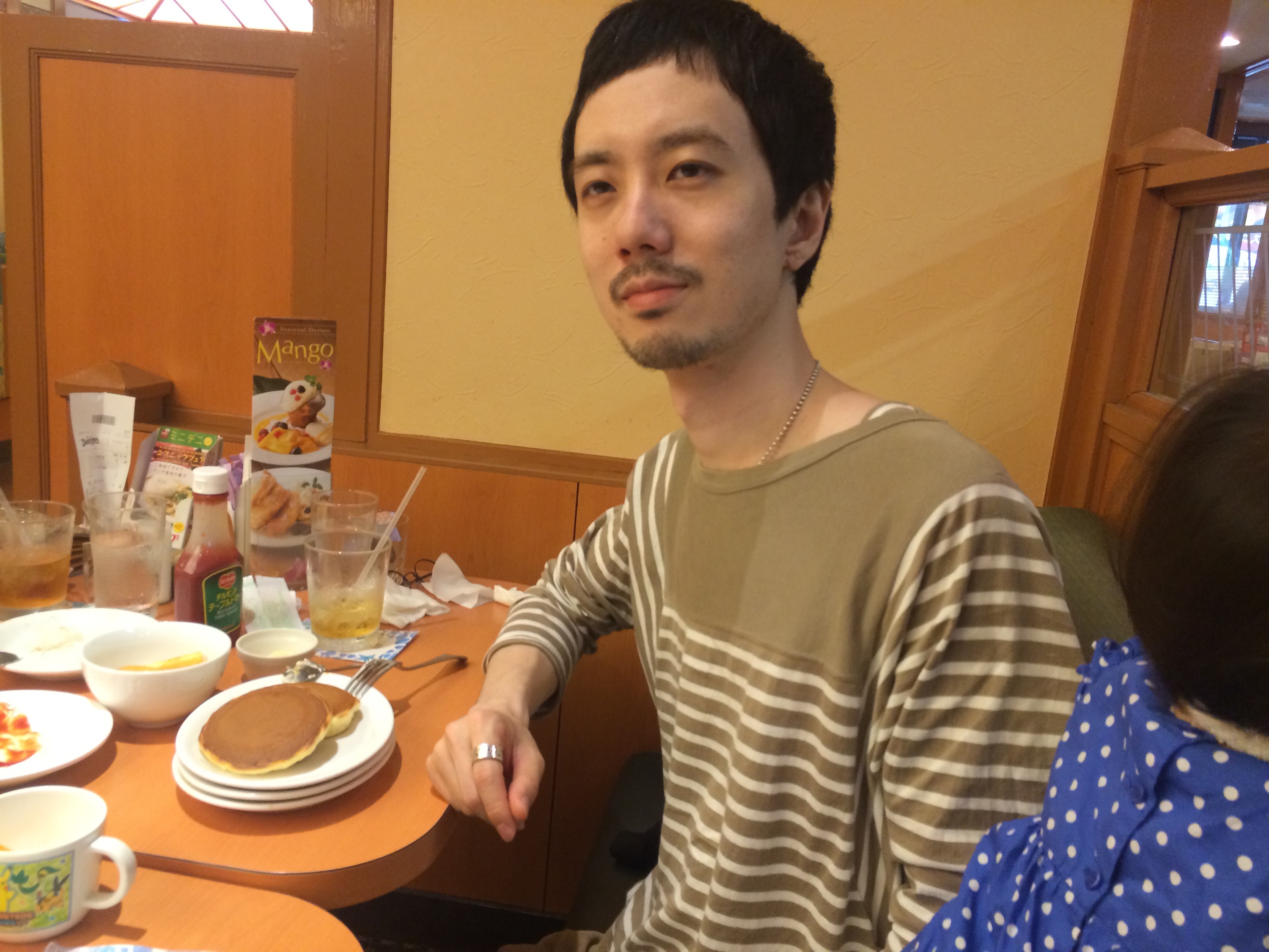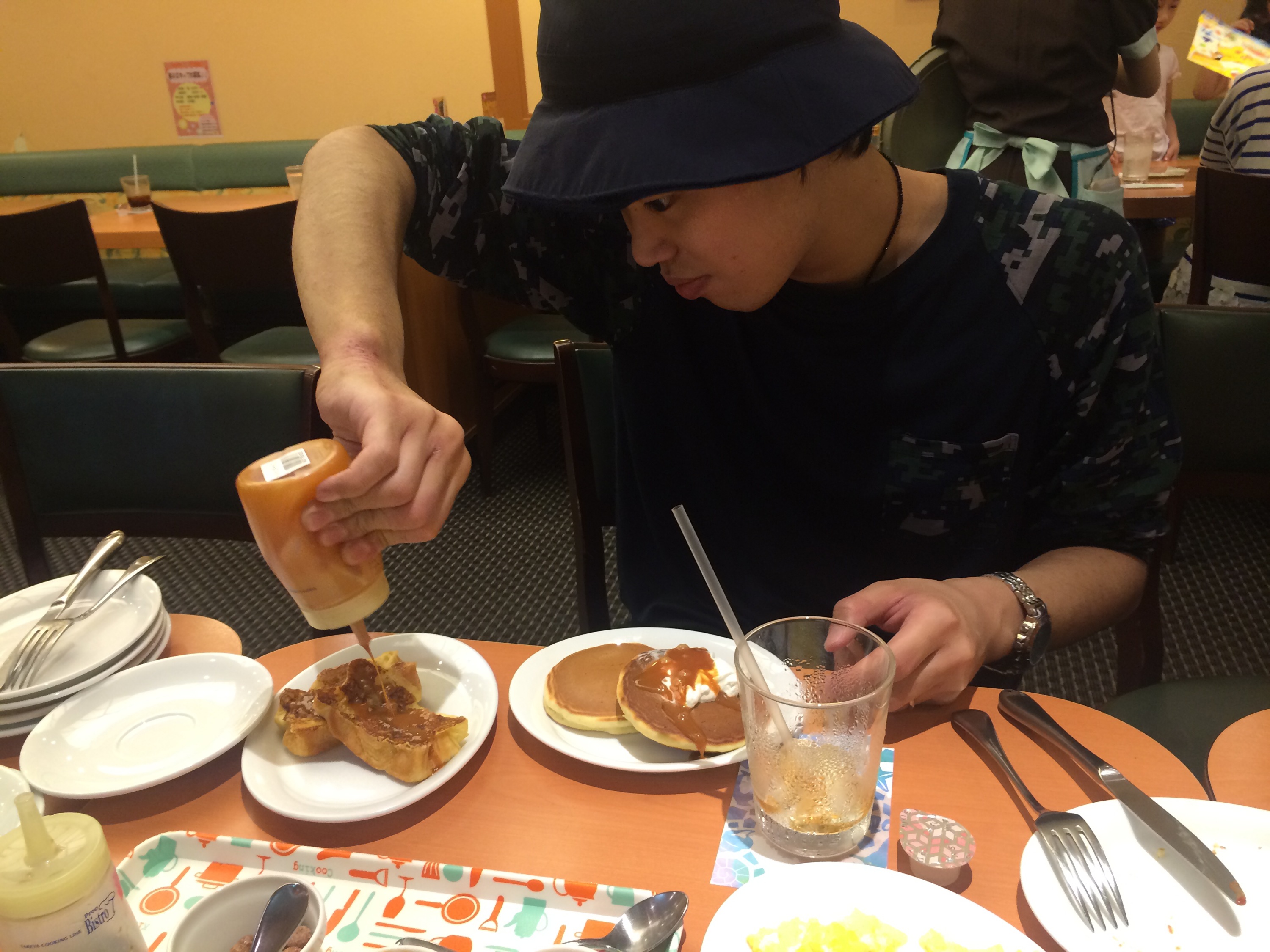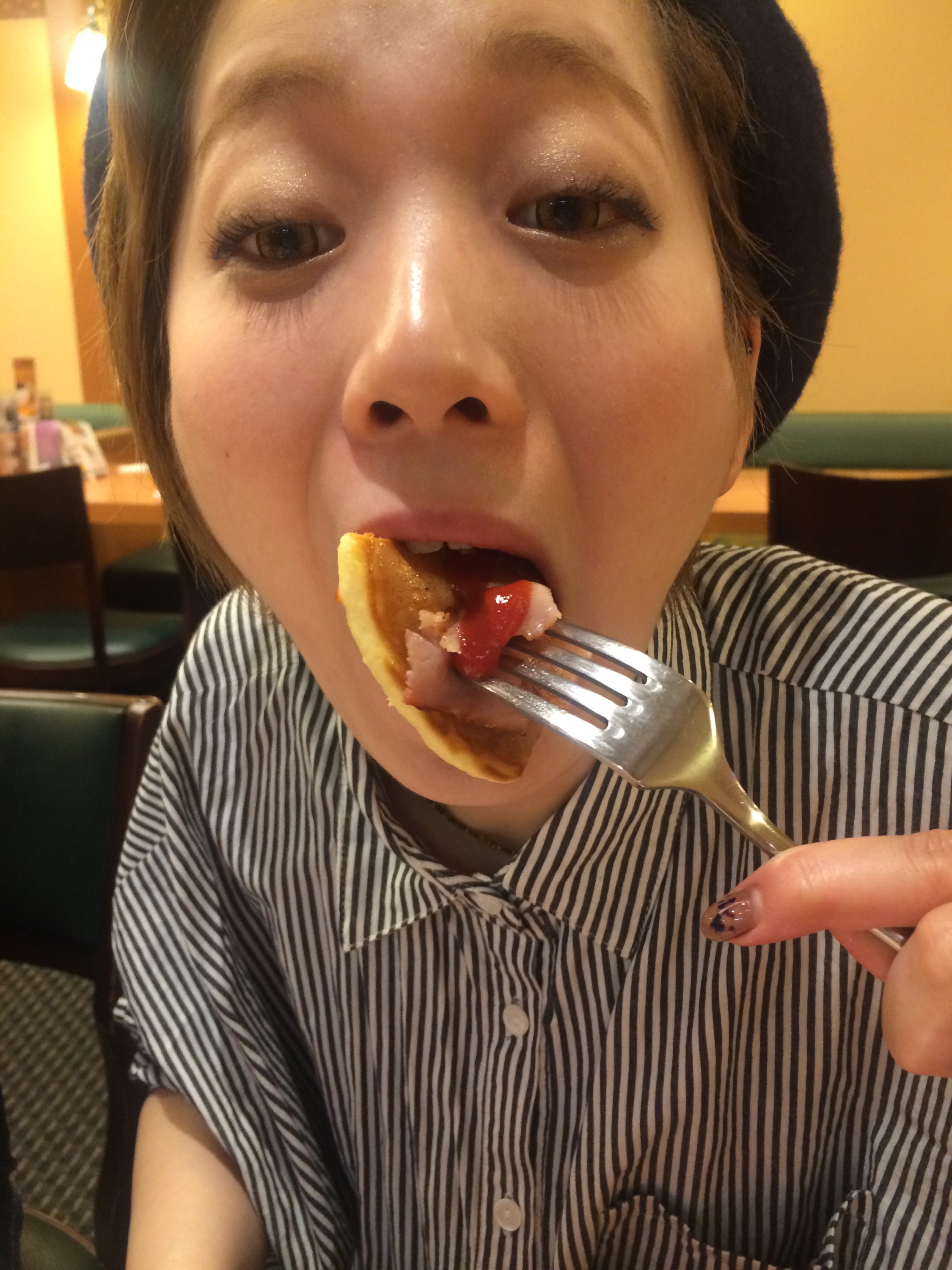 (僕は何とパンケーキが似合わない絵図らなのでしょう( ̄▽ ̄))